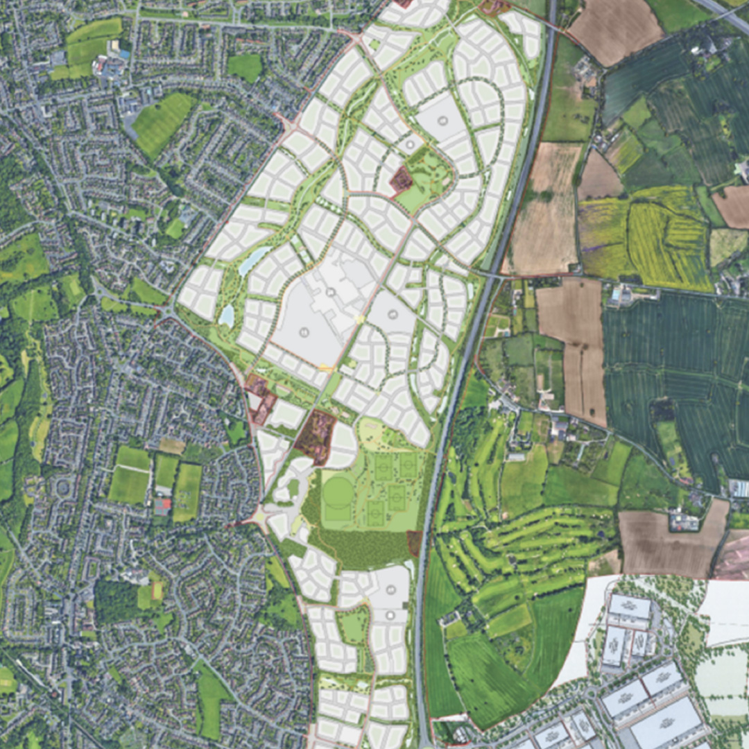 Commercial- Up to 1.0 million sq ft commercial (B1, B2, B8), Local Centre incl 40,000 sq ft retail, 10,000 sq ft healthcare, a 160 bed care home, 6,000 sq ft pub, primary school and 80 bed hotel
